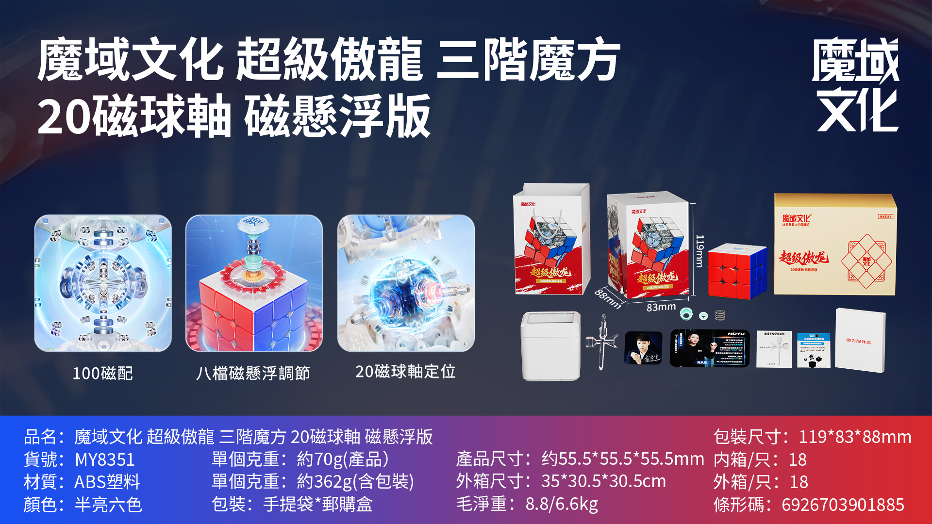 MoYu 魔域文化全新旗艦「超級傲龍」系列重磅登場 —— 全面升級,融合 20 磁球軸核心、全域 100 顆磁體配置與一鍵三調系統,實現旗艦級穩定與爆速手感。