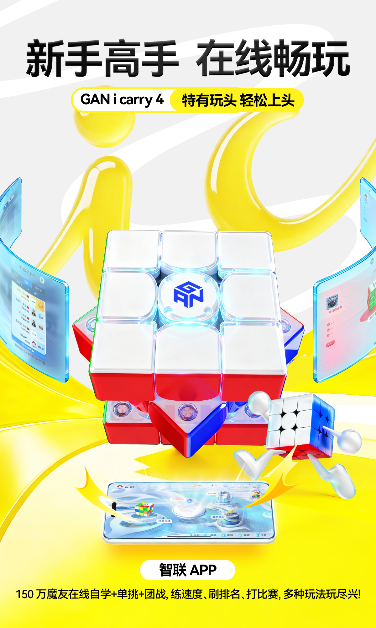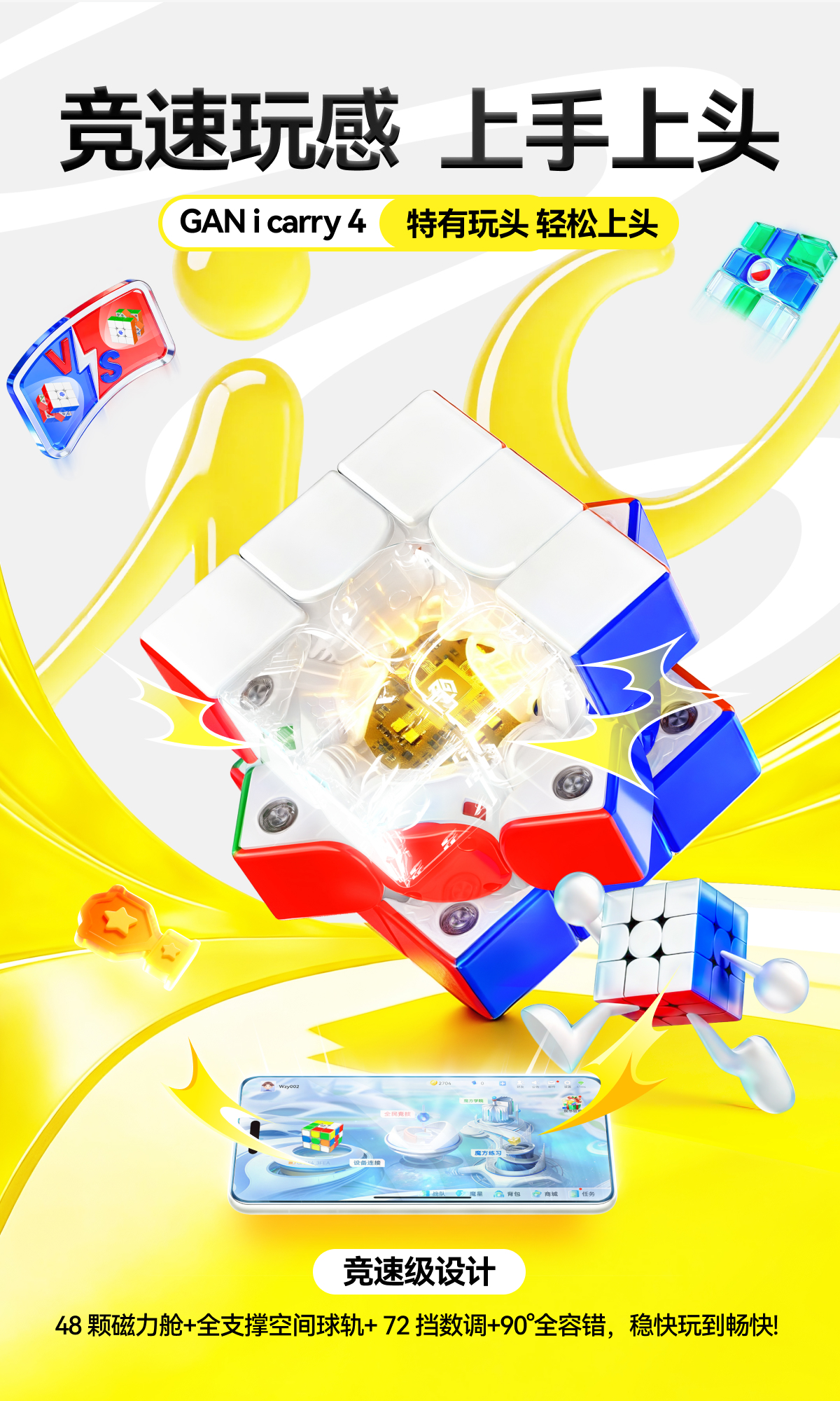 GAN 356 i Carry 4(iCarry 4) 將專業級 3×3 手感,結合 CubeStation 智能系統,由新手入門到競技對戰,每一步都清楚、每一次進步都睇得見。